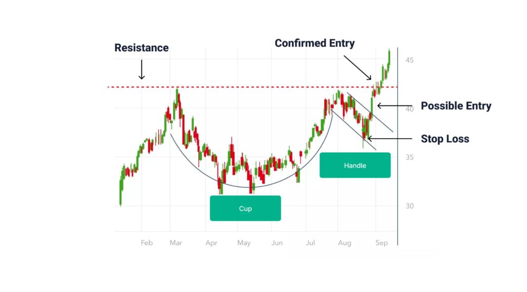 - குறைந்த மாறுபாட்டுடன் (volatility contraction) தெளிவான chart pattern-களை காத்திருக்கவும்: Flat base, VCP, Cup with Handle, Head & Shoulders. விருப்பமான base காலம்: 5 வாரங்கள் மேல்.