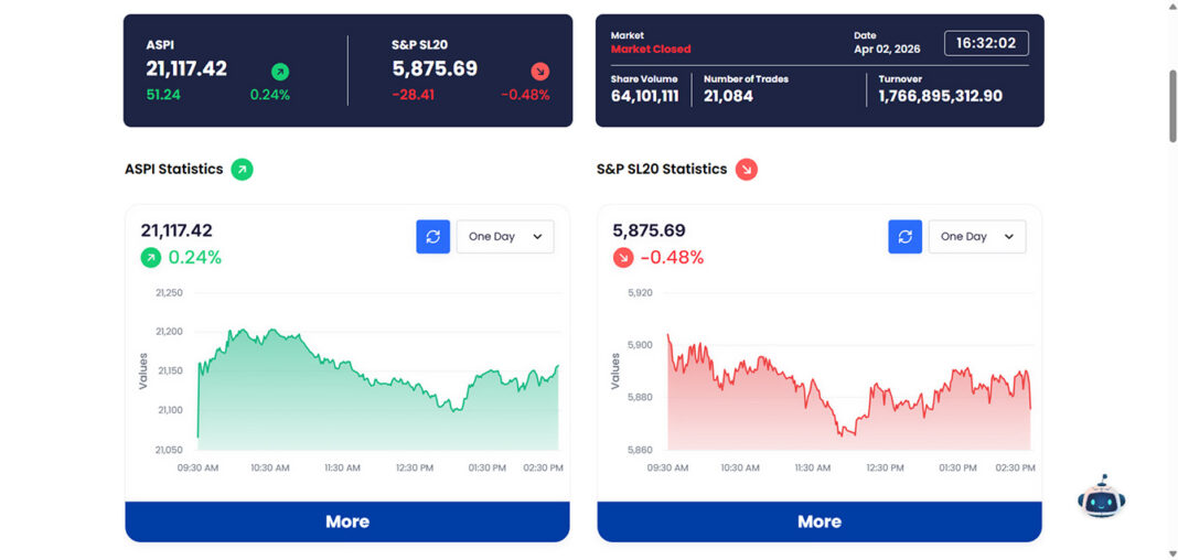 இன்றைய சந்தை இயக்கம் பார்க்கும்போது, ASPI நிலையான உயர்வை காட்டுகிறது. ஆனால் S&P SL20 குறுகிய கால அழுத்தத்தில் உள்ளது