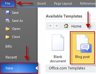 Ms word 2010 பதிப்பை திறந்து file ரப் சென்று new இல் உள்ள Blog post என்பதை தெரிவு செய்யவும்.